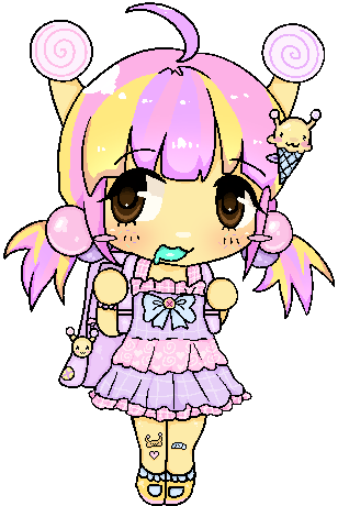 ☆ alien bug from outer space ☆ made of candy & eats sweets to regenerate ☆ also eats stickers & stationery ☆ can’t be killed, but can be melted ☆ wishes to be an idol, so took a job at a maid cafe ☆ not good at singing or dancing ☆ sprite puni hinds in their randoseru ☆ sprite is a detached part of puni ☆ can be found in their room, candy store, or an an underground idol show ☆ interest in heisei kawaii & moe culture ☆ likes when friends want to snack on them ☆ deredere, hime complex, big sister type ☆